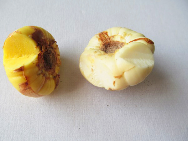 После очистки, посмотрите есть ли больные и зараженные луковицы. Если есть сильно больные луковицы, они сразу видны, их нужно выкинуть, даже если вам их очень жалко. Если вы заметили маленькие черные пятнышки — фузариоз на луковицах гладиолусов, то их можно вылечить.